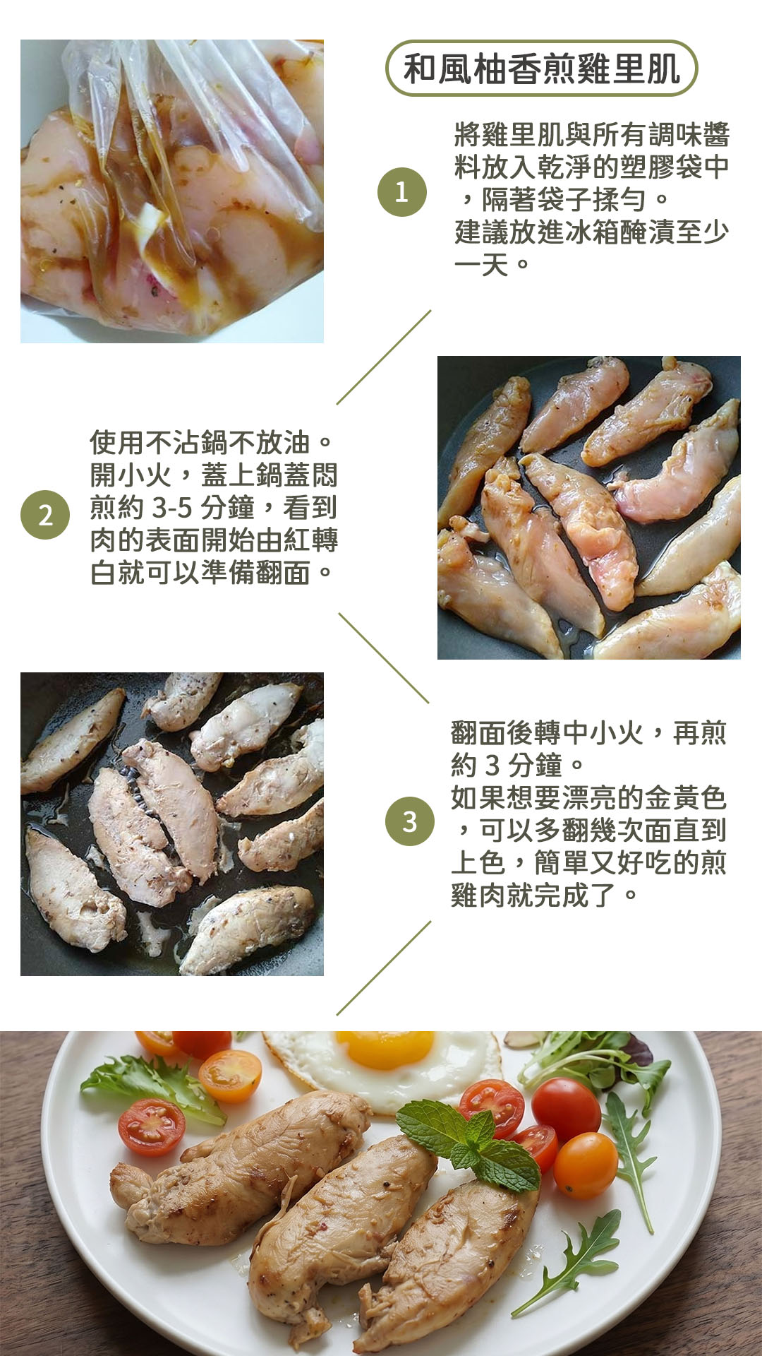 其實「雞里肌」是雞胸肉中最軟嫩的精華部位,只要醃對了,簡單煎一煎就非常好吃。