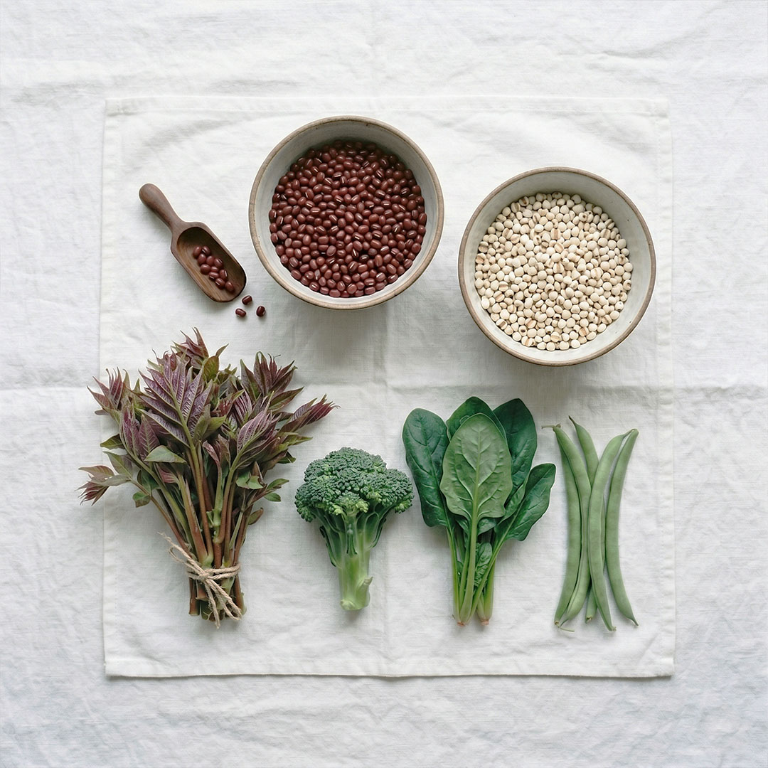 飲食原則:建議攝取能幫助調節生理機能的食物,例如薏仁、赤小豆或深色蔬菜。