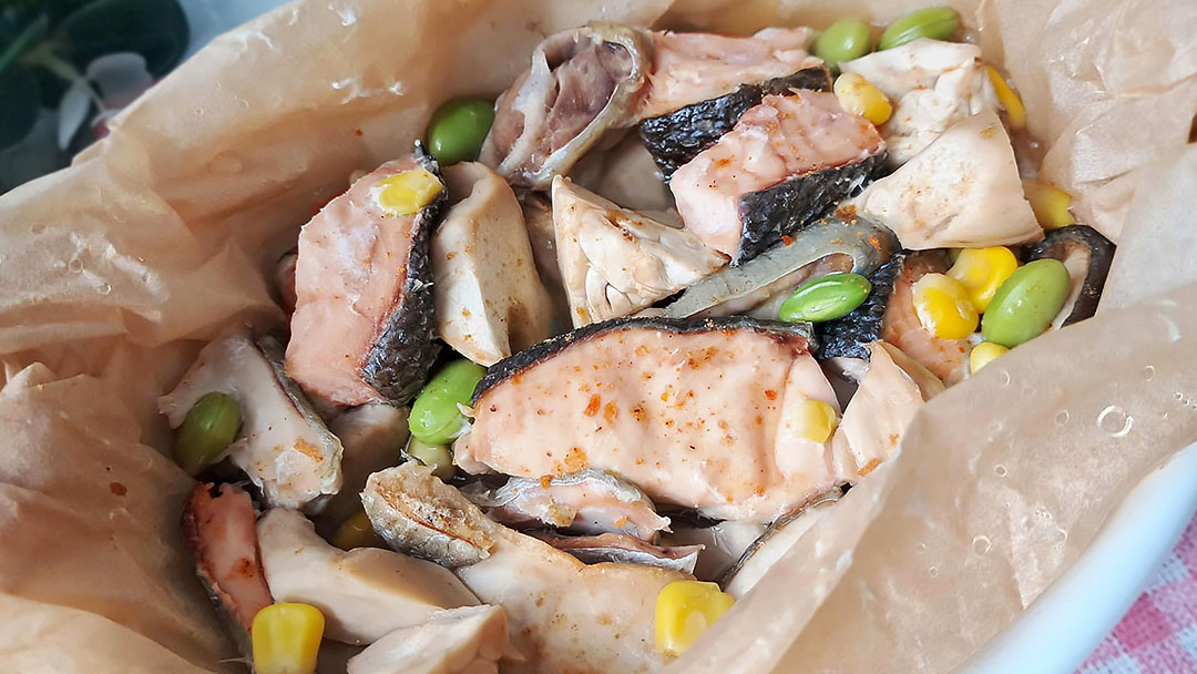 紙包魚的烹調方式能讓鮭魚肉質保持鮮嫩多汁,比一般蒸魚更快熟。