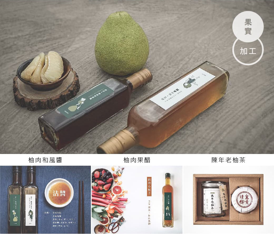 以自己的家鄉麻豆做起,不僅販售文旦果實,也會不斷研發各項不同的加工食品。以健康為出發點,不放過多人工調味品,自然呈現柚子與各食品間自然搭配的味道。