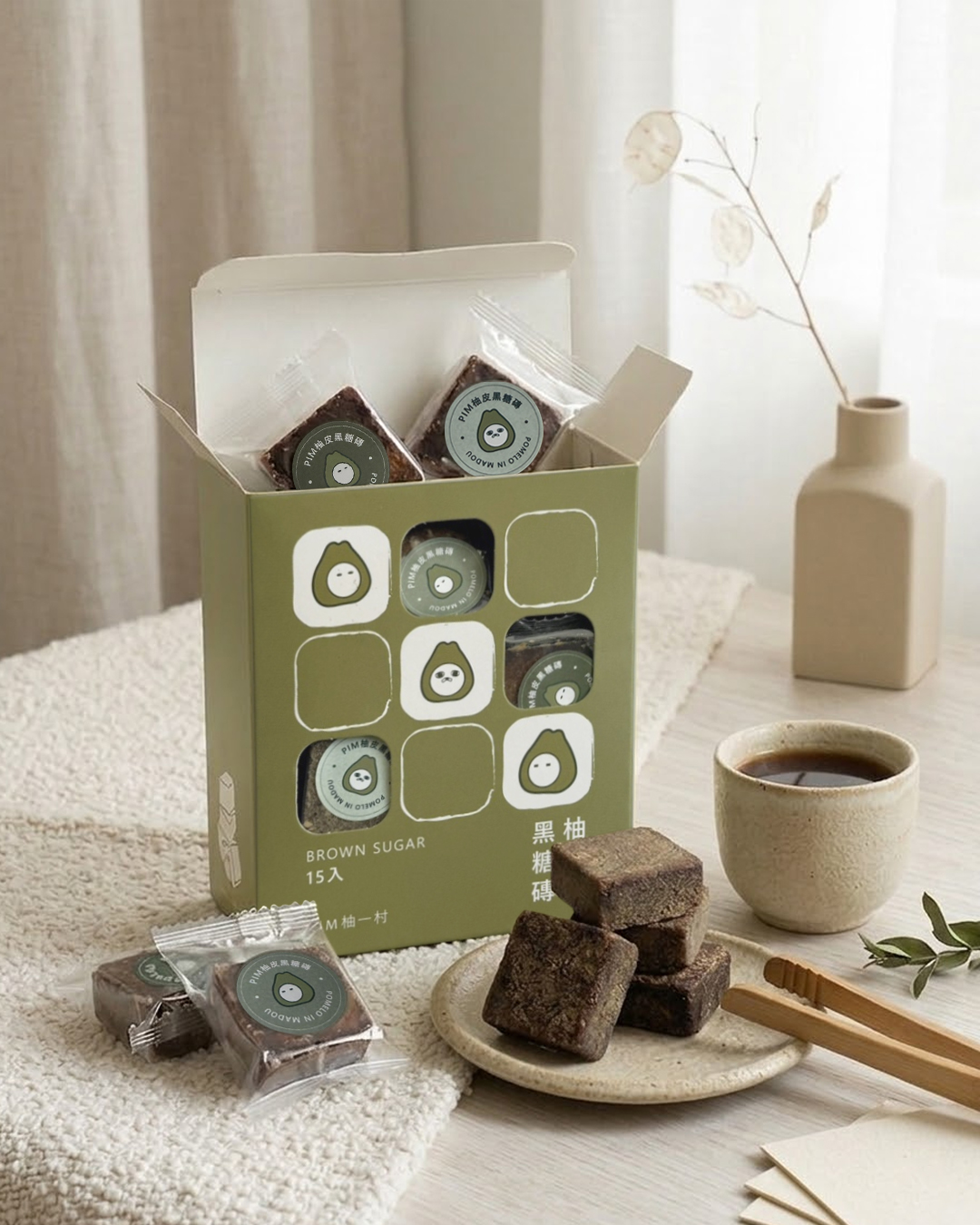 PIM柚皮黑糖磚是一款融合了傳統黑糖溫潤滋養,與台灣麻豆文旦清爽果皮香氣的創新飲品。我們將在地優質原料,濃縮成一顆顆獨立包裝的便利黑糖磚,讓你隨時隨地享受天然柚香的療癒時刻。