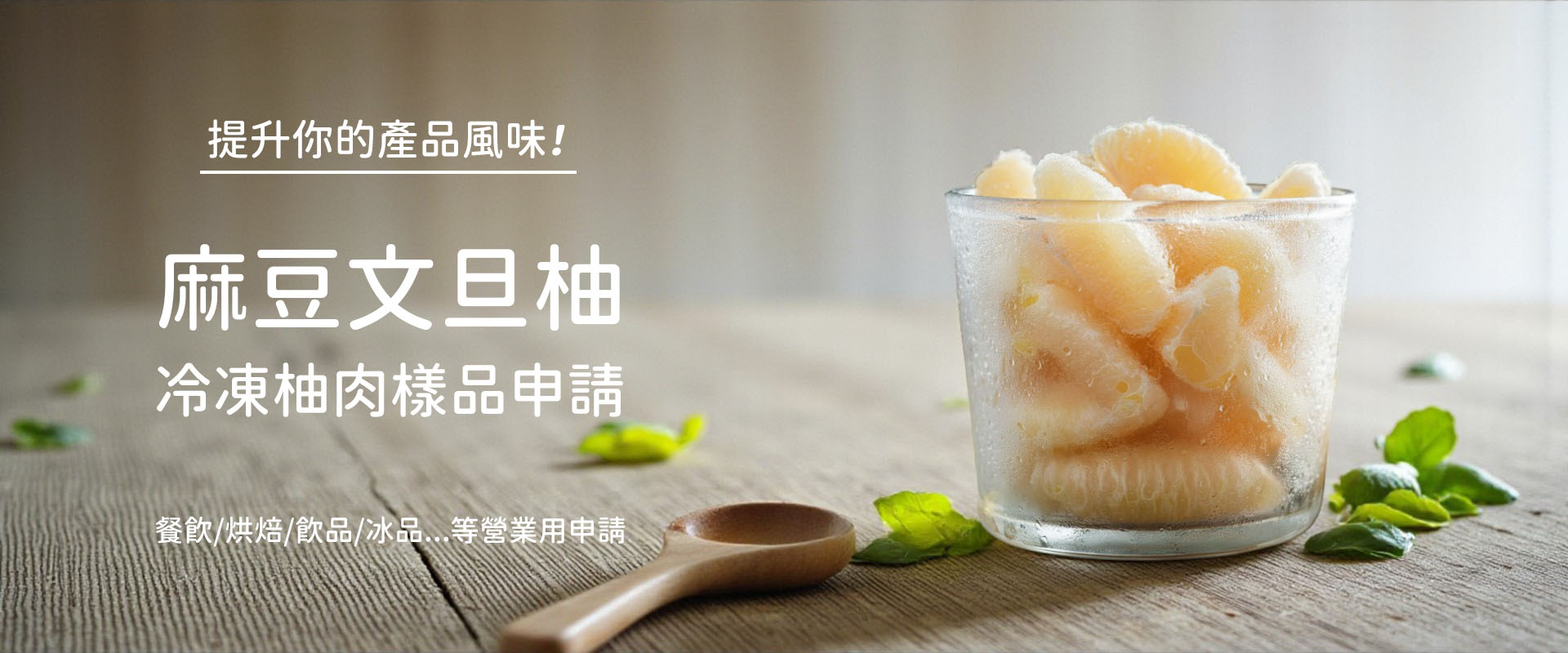 誠摯邀請飲品、餐飲、烘焙、冰品等業者,體驗高品質的冷凍柚肉樣品,共同發掘柚肉商品的無限可能!