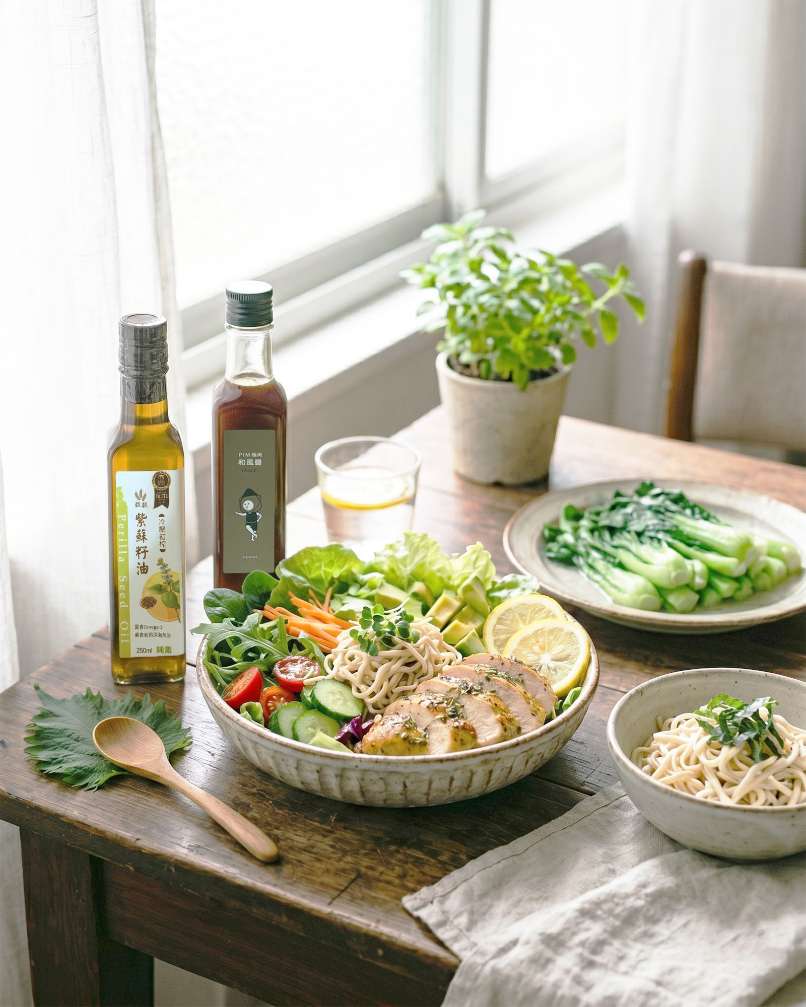 風味拌飯拌麵: 在熱騰騰的白飯、藜麥或五穀麵中,滴入幾滴紫蘇籽油與和風醬。紫蘇的淡雅清香與柚子的微酸交織,讓簡單的家常餐點變身營養美味的輕食。